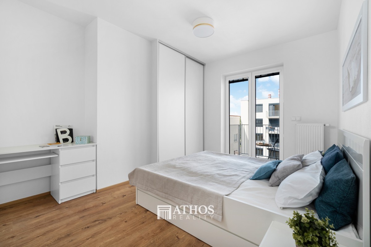 Moderní, světlý byt s ložnicí orientovanou do vnitrobloku a prostorným
