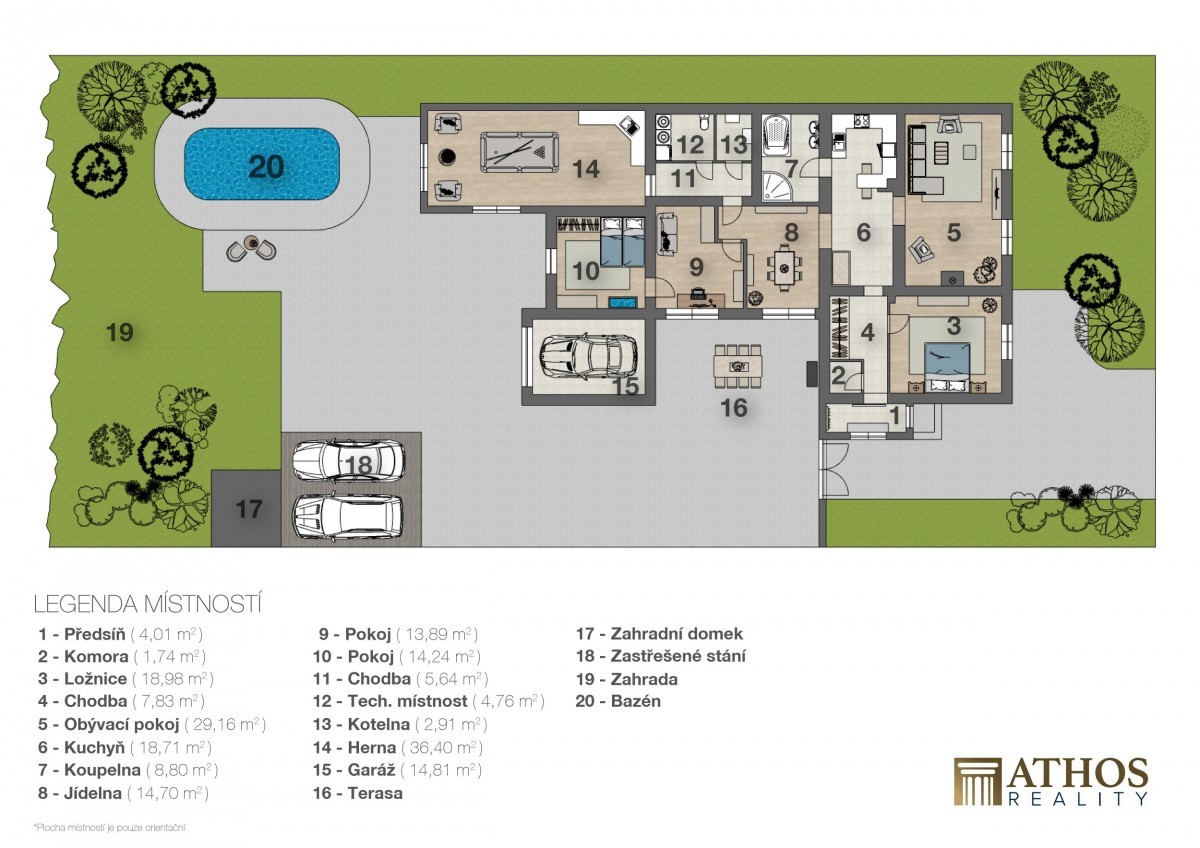 řešení poskytuje ideální zázemí i pro početnější rodinu. Výměry a